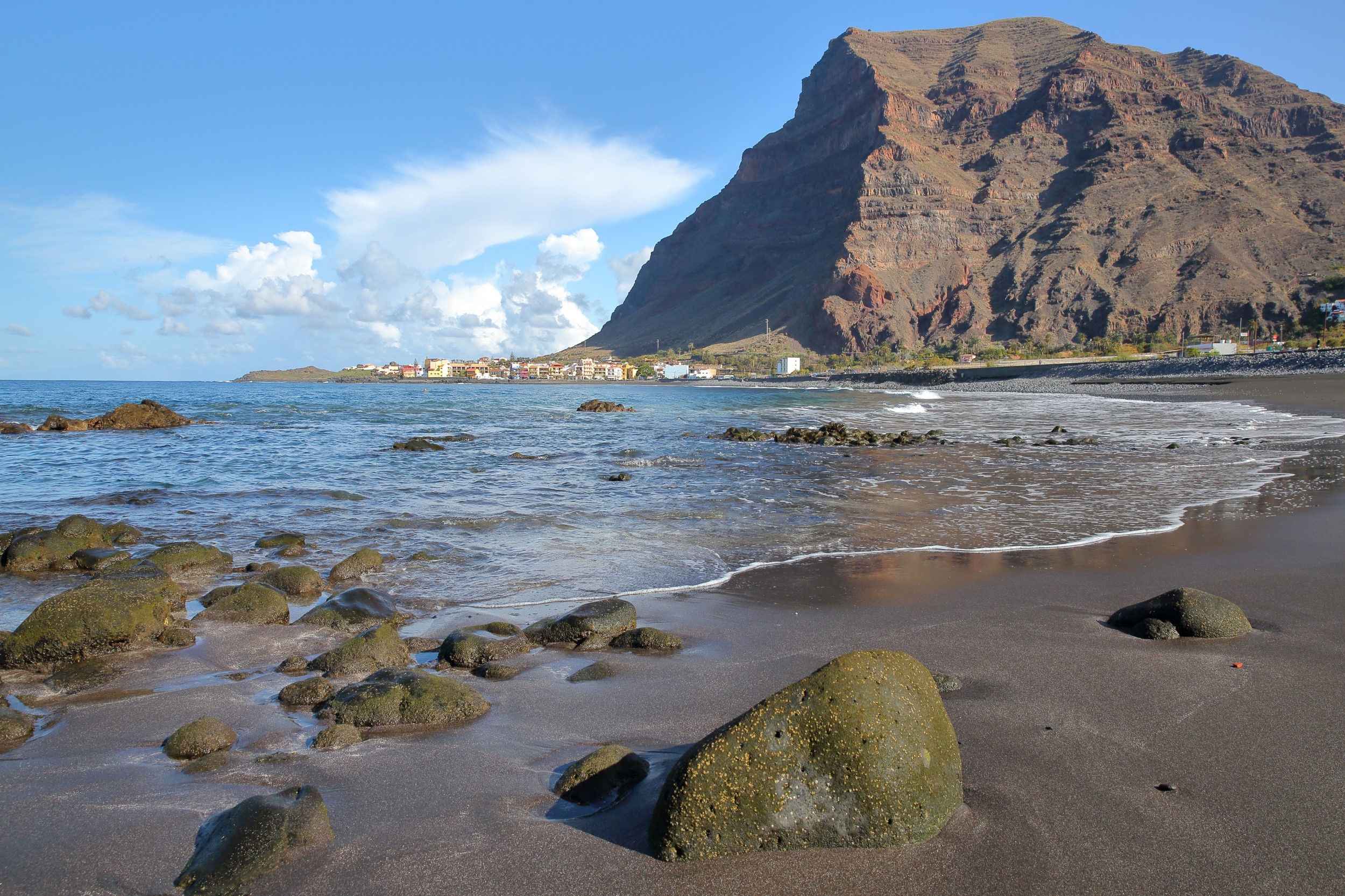 Kommt mit auf eine Reise durch tiefe Täler, magischen Wälder und bunte Städte. Vor allem der im Zentrum der Insel liegende National Park Garajonay begeistert mit seinen nebelverhangenen Schluchten knorrigen Bäumen und magischer Stimmung. Im Valle Gran Ray, wo auch das Hotel Gran Ray liegt, laden pechschwarze Lavasand-Strände zum Baden ein. Hört sich komisch an, der dunkle Sand wird jedoch durch die Sonne angenehm warm.